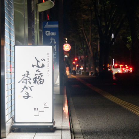 博多駅筑紫口より徒歩5分。ヨドバシカメラ音羽交差点近くでアクセス良。わかりやすい好立地です。ぶん福茶がまは水色の九州ビルの地下一階です。